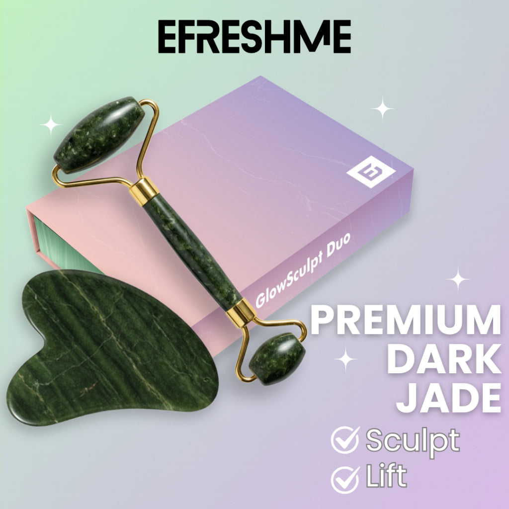 Efreshme Premium Natural Dark Jade Roller and Gua Sha Set for Face Lifting Slimming Beauty Tool Massage
