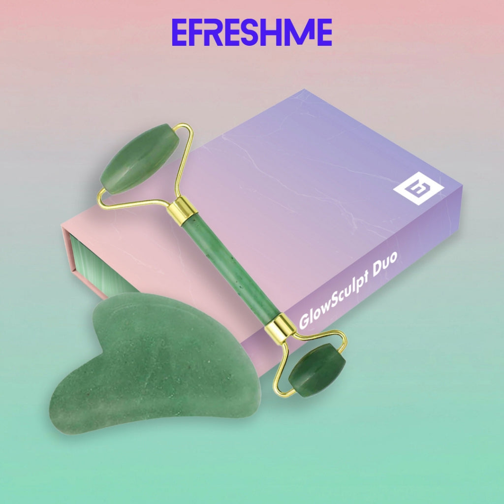 Experience a soothing, spa-like ritual from home with the GlowSculpt Duo — a premium green jade roller and gua sha set crafted from natural stone and polished to perfection. Designed to sculpt facial contours, reduce puffiness, and promote a naturally healthy glow, this pair elevates your daily skincare routine into a calming self-care moment.