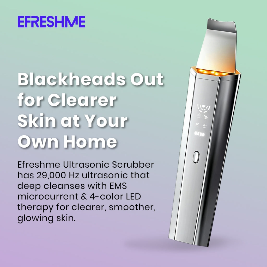 Efreshme Ultrasonic Skin Scrubber - Pore Ion Cleaner Facial Exfoliation Blackhead Whitehead Pimple Remover